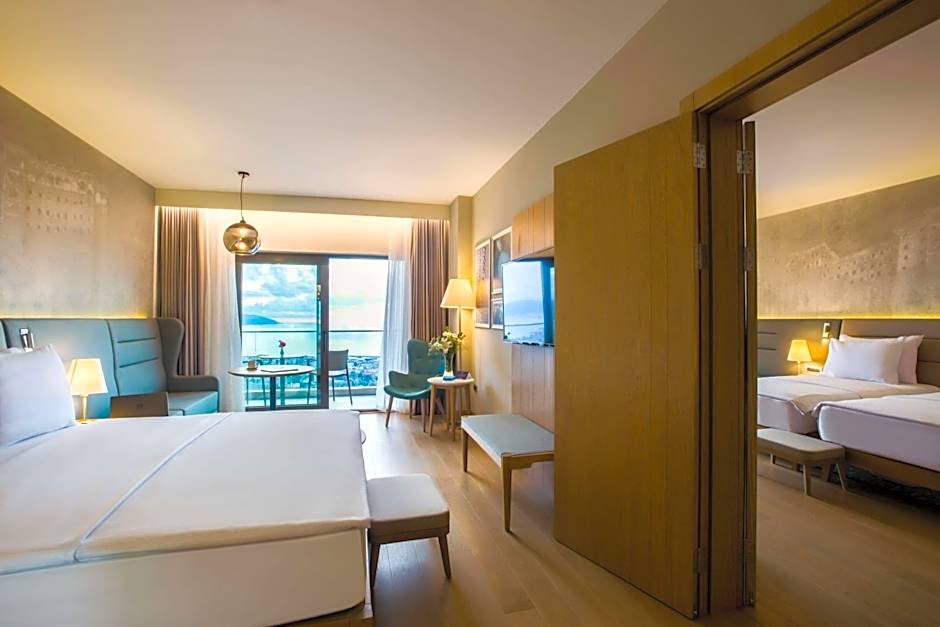 The pool with a view is a top feature of this twin/double room. The spacious twin/double room features air conditioning, soundproof walls, a terrace with sea views as well as a private bathroom boasting a shower.